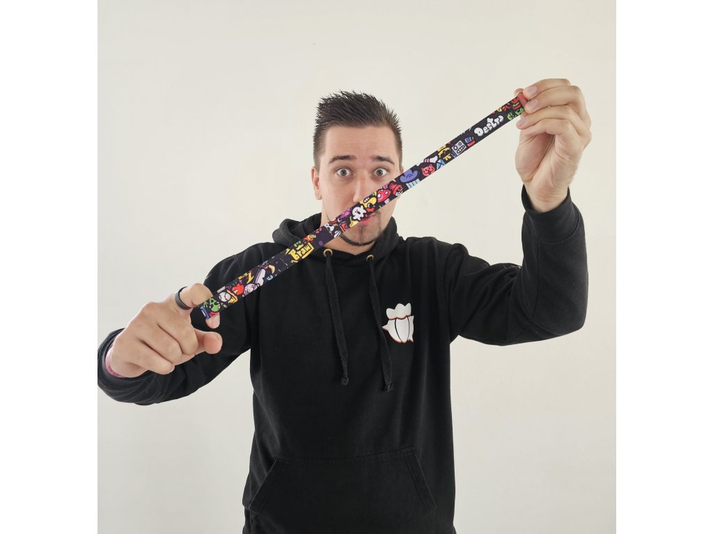 Praktická klíčenka na krk s kovovou karabinou na konci.